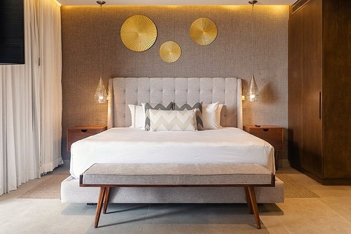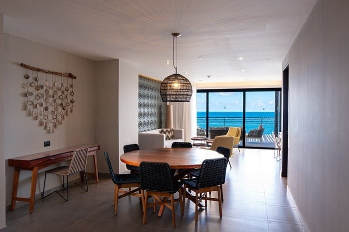 Al dar tus primeros pasos en este recinto te darás cuenta de la legendaria experiencia que vivirás. Esta suite de 285 m2 cuenta con dos habitaciones. El cuarto principal tiene dos grandes ventanales, un balcón privado amueblado, una cama King-size y un baño con lavabo doble y acabados de mármol. La segunda habitación tiene 2 camas Queen-size, un baño privado con todas las amenidades y balcón. Su sala de estar posee un sofá cama doble, un comedor y una cocina equipada con estufa, horno, microondas, refrigerador, cafetera y una barra desayunador. Su balcón frente al mar amueblado con sala y camastros te permite apreciar el segundo arrecife más grande del mundo. El rooftop privado cuenta con piscina infinita, tina de hidromasaje, camastros, sombrillas para sol y asador.