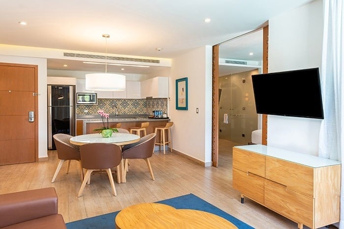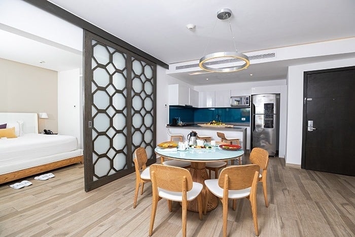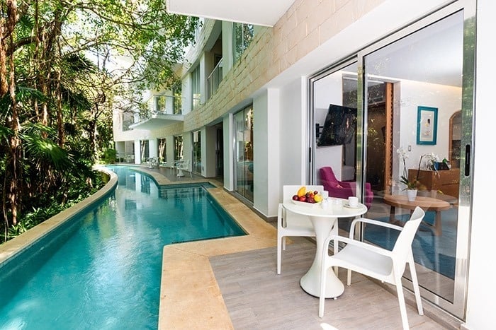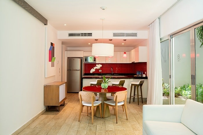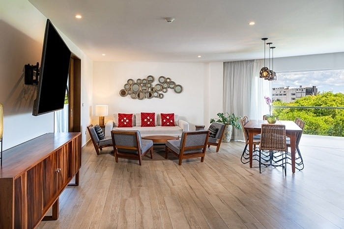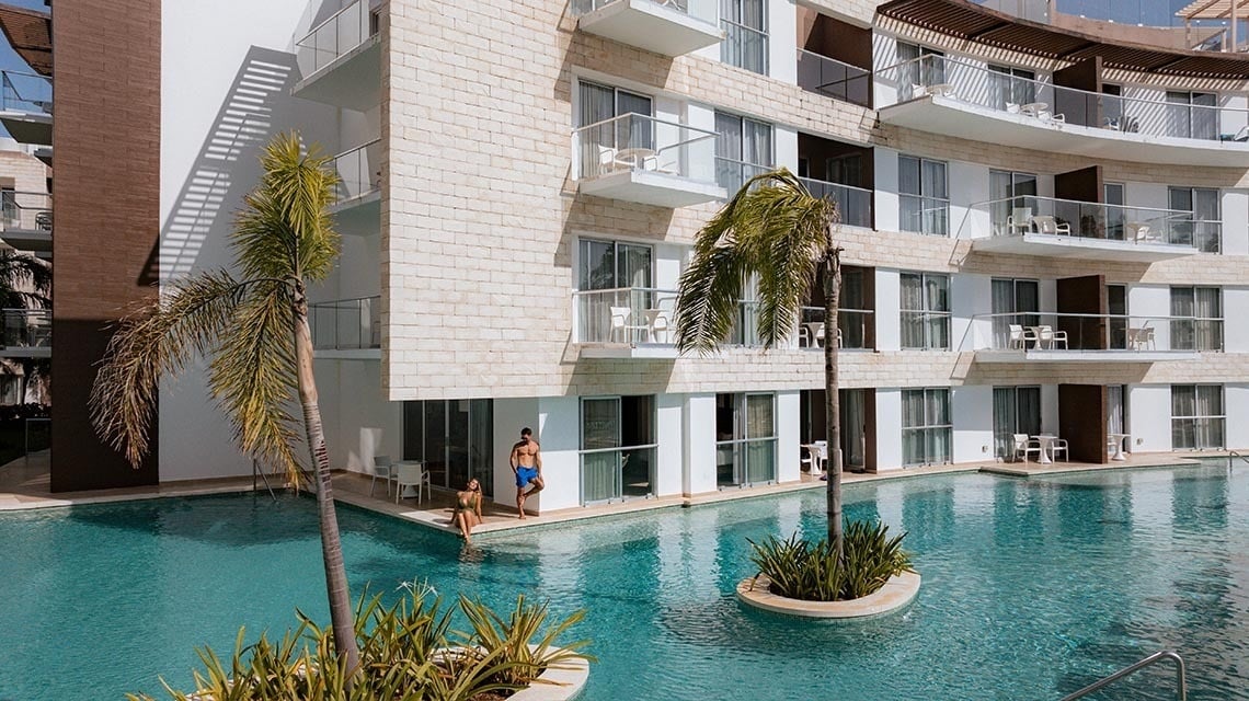 The Fives Beach Hotel - Á la Carte All Inclusive is a resort with luxurious and spacious 1, 2 or 3 bedroom suites with private lounge terraces in the penthouses and an exclusive full service spa. The hotel is strategically located in Playa del Carmen, on the Riviera Maya, just 40 minutes south of Cancun International Airport. With this unbeatable location, guests can experience firsthand all that the area has to offer, from charming restaurants to shops and local attractions in downtown Playa del Carmen, which is just 10 minutes from the hotel.
